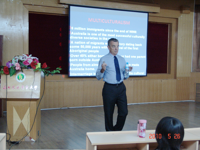 在同学们热烈的掌声中,Richard教授开始了精彩的报告。Richard教授用幽默和纯正的英语为同学们介绍着澳大利亚这个古老而发达的国家,不时引得了同学们的惊叹和愉快的笑声。Richard教授的演讲开拓了现场员工们的眼界和思路,使同学们对西方文化和留学海外都有了进一步的了解