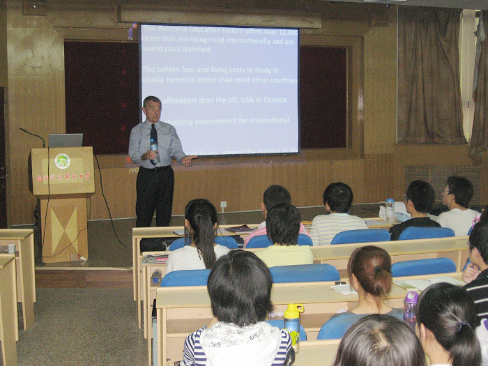 报告会中,Richard 教授经常穿插了互动环节。通过与同学们的互动,大家更好的了解到澳大利亚的教育体制与高校概况。通过讲述许多员工在澳大利亚的留学经历,详尽的说明了申请澳大利亚留学需要准备的材料以及各项技巧,使同学们对留学注意事项了然于心。