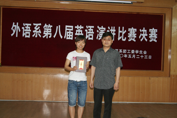 5月23日下午3点30分,外语系第八届英语演讲比赛在七号楼二层报告厅举行。外语系系主任窦琴、系党委书记李安民、党委副书记王小平出席了比赛。比赛开始前,由系主任窦琴教授致辞并宣读了比赛规则和奖励办法。