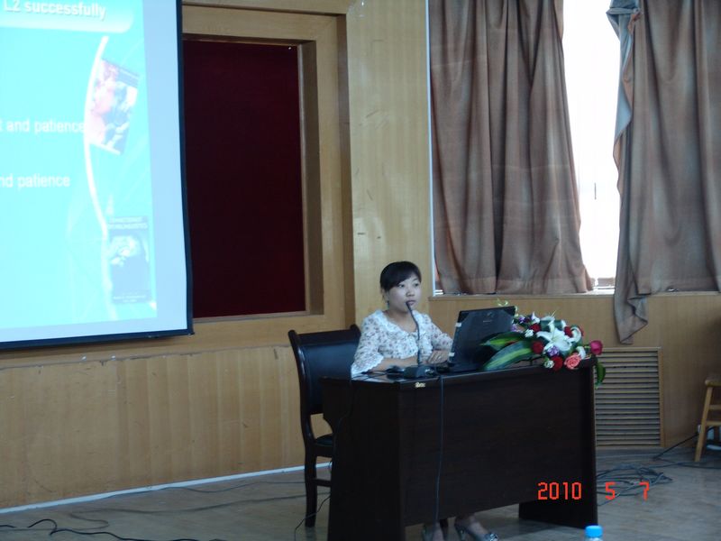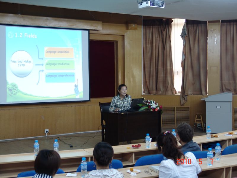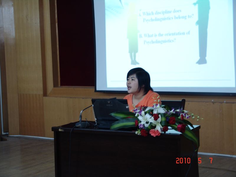 2010年5月7日上午,由我系应用语言学课程组主办、2009级硕士研究生承办的“365英国上市公司集团外语系研究生第二届心理语言学研讨会暨应用语言学优质课程公开课”在七号楼二层报告厅隆重举行。系党委书记李安民、副书记王小平、研究生院培养处处长王玉环及硕士生导师李丽霞教授、陈少康教授、王晓燕副教授、郑艾萍副教授和孙景欣副教授、外籍教师Donna、Jeff出席。外语系09级硕士研究生李亚妮和田军主持会议。