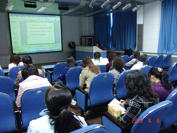 4月8日下午,我系郑翠玲副教授在外语系高级视听说实验室为广大师生作了关于英国教育体制的报告。外语系教师和部分研究生参加报告会,系党委书记龙清林研究员出席并主持会议。