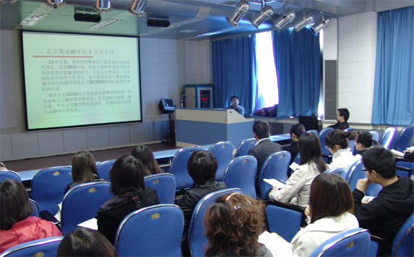 李总先给大家介绍了公司的总体情况。北京赛迪翻译技术有限公司是中国电子信息产业发展研究院的直属单位,其前身是院中文信息处理开放实验室。21年以来,相继承担了国家重点科技攻关项目、国家863计划、国家自然科学基金等有关科技情报智能翻译的研究、开发及应用项目,以及国际组织间的合作项目,是2008北京奥组委机器翻译系统唯一供应商和人工翻译服务提供商;是法国阿尔斯通、施奈德、华为公司翻译服务提供商。