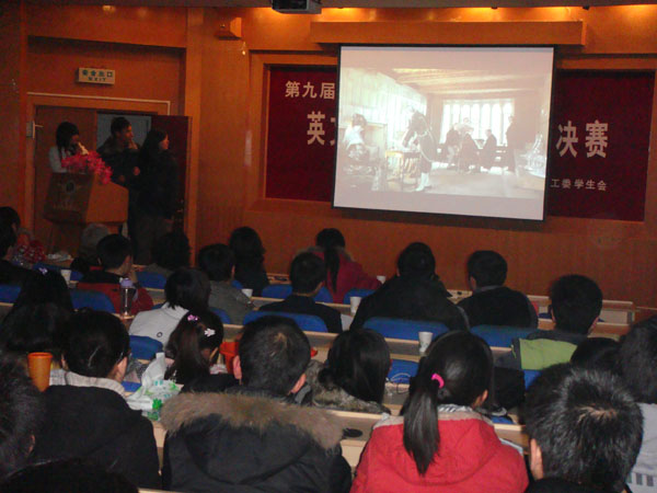 2009年11月27日晚,我系在七号楼报告厅隆重举行了第九届金秋文化艺术节之英文原声电影配音大赛决赛。系党委书记龙清林、校团委副书记石颖贤、各公司团工委书记以及500余名同学到场观看了比赛。外教Linda 和刘青利等老师担任评委,王立永、董志颖担任主持。
