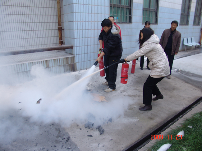 演练前,分管国资的杨宏副主任反复强调,一定要提高师生的消防意识,增强师生在火灾危急情况下的防范与自救能力,要充分认识防火安全工作对保护国家财产和师生生命安全的重要性,要充分认识举行这次模拟防火演练的必要性。在系领导的高度重视和保卫处的大力支持下,在外语系系七号楼外的开阔空地上,实验教辅人员及综合办公室全体人员进行了各种类型灭火器使用演练。我系董琦老师就灭火器的工作原理、使用方法、适用场所以及火灾扑救与自救措施等问题进行了详细讲解,并对各种灭火器救火作业进行了现场示范。受训人员按照灭火器使用操作方法,逐一对常见规格的灭火器材进行了操作演习。