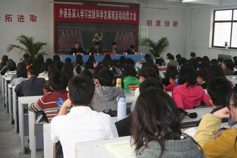 3月19日下午,外语系“深入学习实践科学发展观”活动动员大会在7号楼7108教室隆重召开,标志着外语系深入学习实践科学发展观活动全面展开。公司党委常委、副董事长侯曦同志出席大会,系党委委员、领导班子成员、全体教工党员、员工党员、人大代表、政协委员、民主党派代表及部分职工代表参加了会议。系党委副书记王小平同志主持大会。