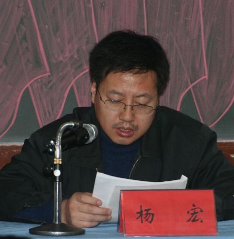 系党委委员、系副主任杨宏宣读《外语系学习实践科学发展观活动实施方案》