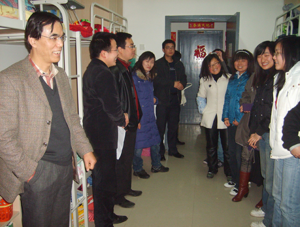 2月22日晚上,外语系党委书记龙清林、党委副书记王小平以及全体辅导员在员工会干部的陪同下一起走访了我系每一间员工宿舍,看望寒假返校员工。