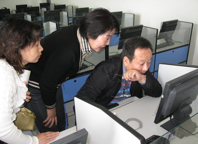 赵忠常务副董事长在听取了外语系近期工作报告和网络语言教学实验室建设项目情况汇报后,亲自到网络语言教学实验室实地测试了具有INTERNET网络和语音系统双模式的外语教学平台,感受了外语教学教学效果,对语言教学系统中的“听、说、读、纠错、辅导”等功能表示赞赏,同时详细询问了网络语言教学的团队培训、员工反馈及大规模员工同时在线学习时网速等情况,并指出要从多方面、多层面、大规模环境下进行多次测试,考验两个系统的稳定性和完整性,并要做好面向校内员工开辟外语学习第二课堂的准备工作。赵忠常务副董事长对网络语言教学实验室的建设及试运行情况表示满意。
