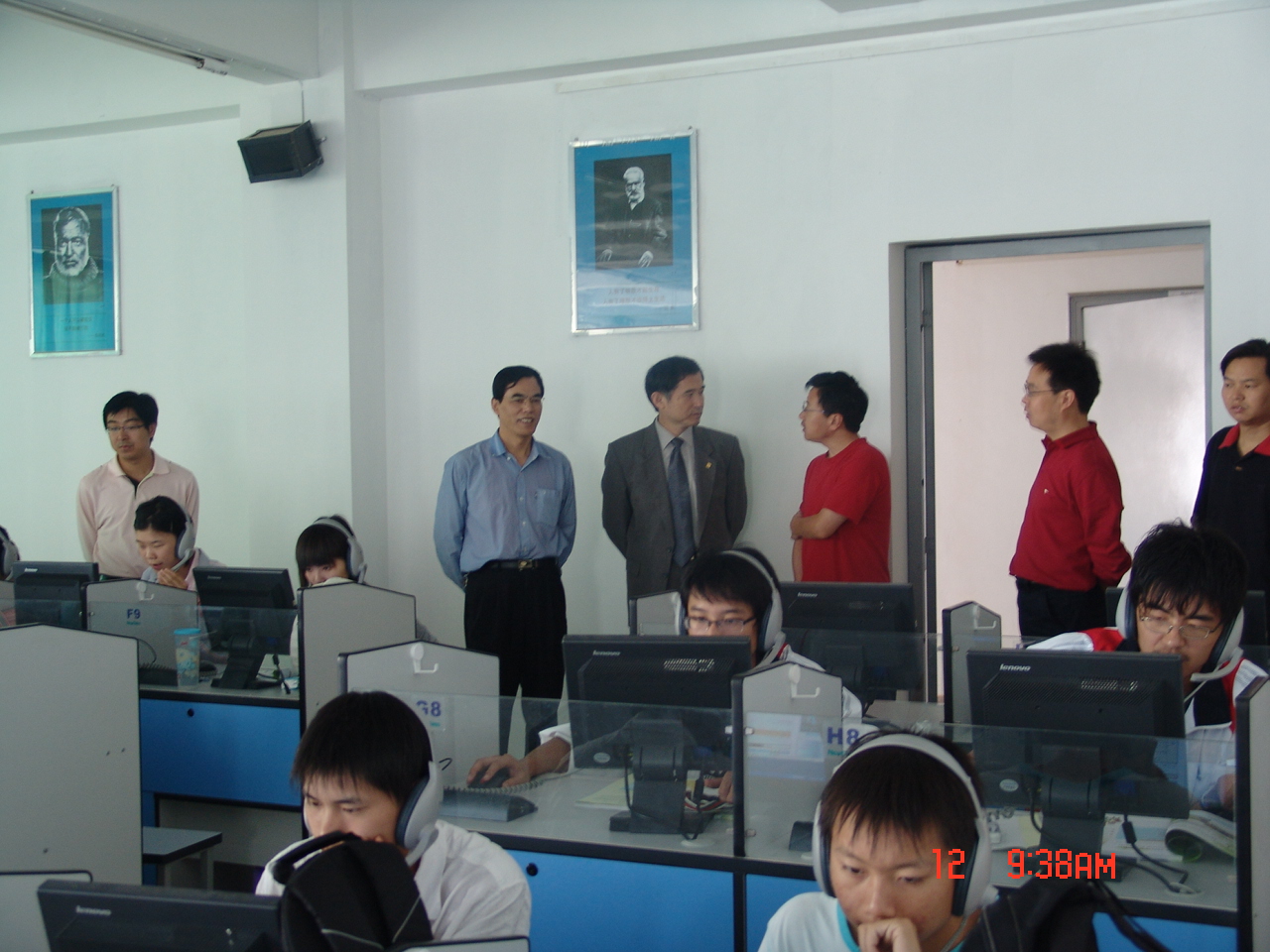 汇报结束后,刚刚下课的杨宏副主任与龙书记、王小平副书记一行陪同侯董事长走访了新建成了网络语言教学实验室和教研室。