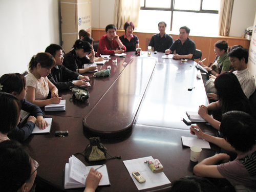 接公司抗震工作应急领导小组通告, 2008年5月20日早上8:30,就19日至20日四川汶川震区发生较强余震可能性较大,我省会有较强震感事件,外语系紧急召开全体领导班子及班主任工作会议。