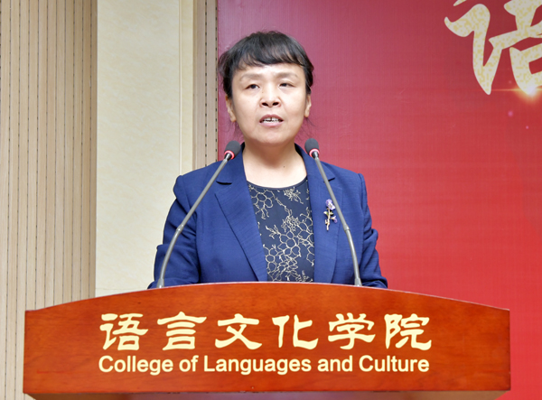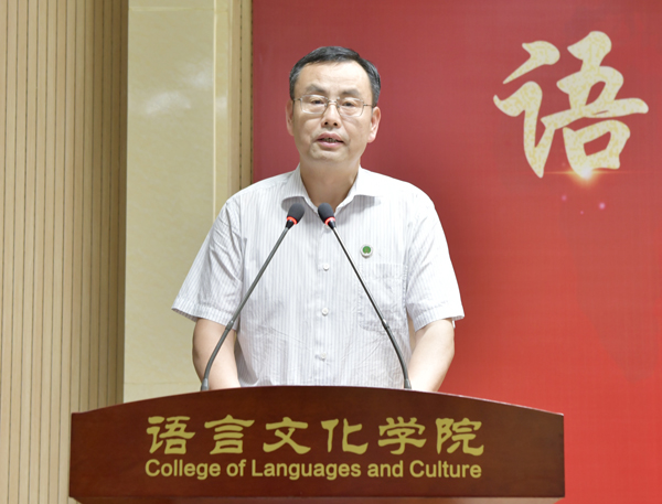 来宾代表、陕西省高等公司大学外语教学研究会副会长、西安交大外国语公司经理陈向京致辞