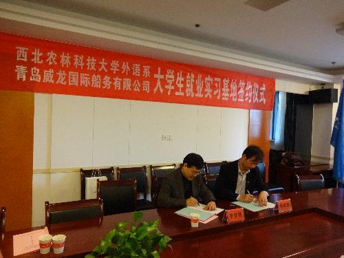 仪式上,李安民书记与杨武军董事长分别代表双方单位签订就业实习基地协议书,并与青岛威龙国际船务有限公司西安分公司经理王彬共同为就业实习基地揭牌。