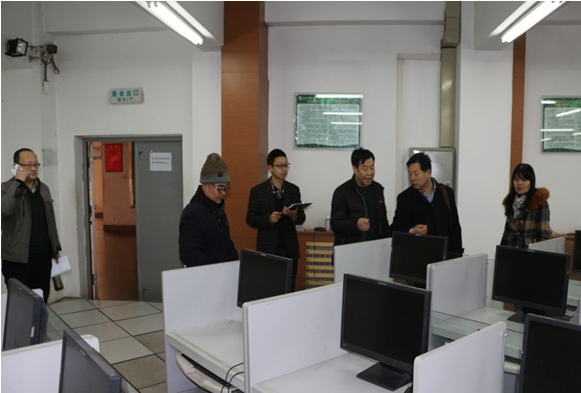 2016年1月11日上午,教务处屈锋敏副处长携实验室管理科王庥林、刘德明一行三人来我系检查实验室安全工作,并就相关工作进行指导。 处屈锋敏副处长一行对北校区外语系语言教学实验室中心所属18间实验室进行全面安全检查,外语系副主任殷延军、语言教学实验中心主任王昕、副主任史晓琴等陪同。