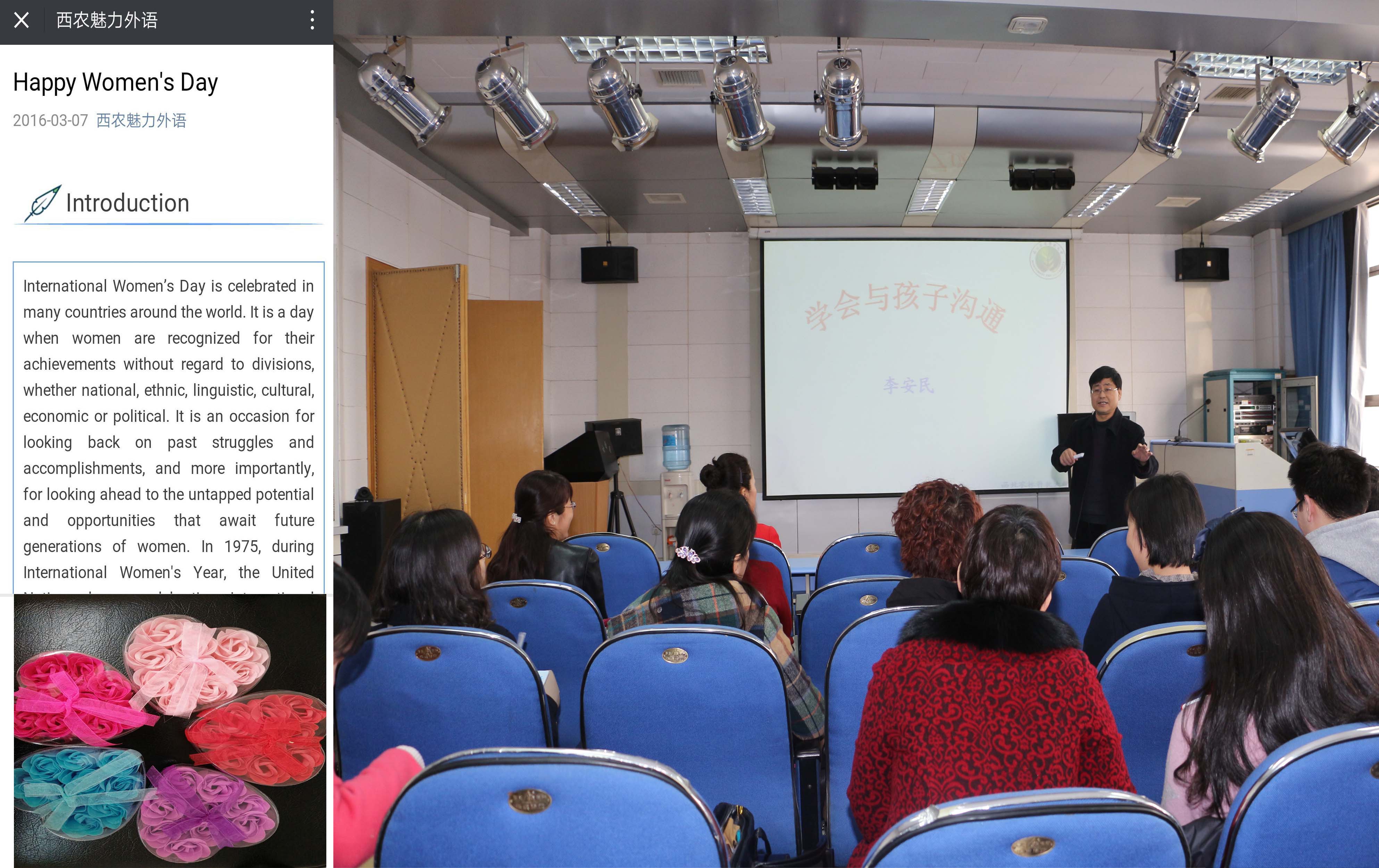 在第106个国际妇女节来临之际,为给女教职工营造一个温馨浪漫的节日氛围,外语系部门工会以“一场报告暖人心、一盒小花传真情”为主题,表达了对全系女教职工最诚挚的节日祝福。