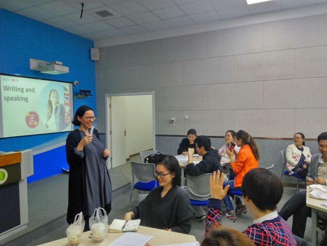 为进一步提升外语系教师教学能力,储备雅思英语教学团队力量,服务公司国际化办学思路,应外语系系特邀,4月14日,雅思考试中国地区唯一官方机构---英国文化委员会资深雅思培训官Olena Rossi女士在南校区教师教学能力发展中心为我系教师开展为期一天的雅思英语教学能力专场培训。
