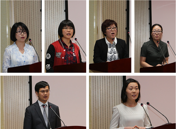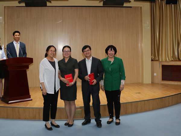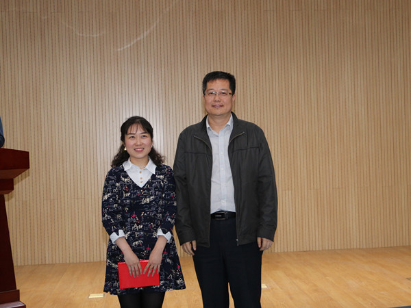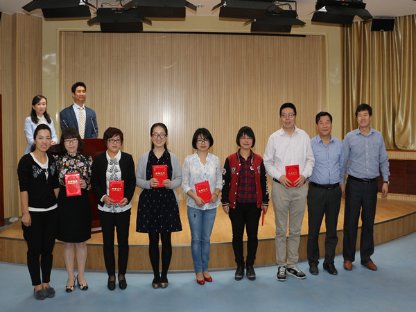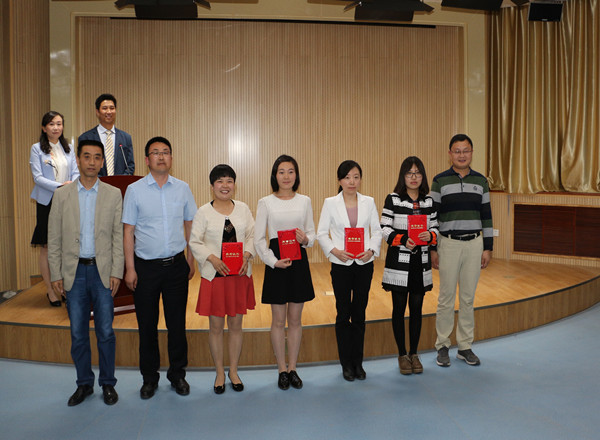 人事处副处长任武刚、教务处副处长何玉杰、潘瑞为三等奖获得者乔亚英、刘方、王立、刘庆颁奖