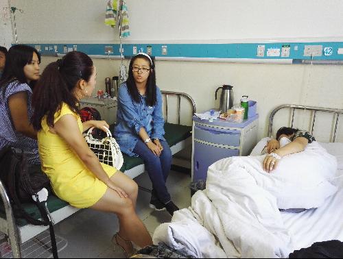 8月26日起床后,马小娟感到头晕眼花、呕吐、腹泻,见此情景舍友急忙联系辅导员,迅速送至医院就诊。马小娟生病后,她的几位舍友不间断的悉心陪伴与照顾:给她量体温、买药喝、垫付在医院的治疗费用、为她端茶倒水、穿衣打饭、陪她做各项化验检查,这些平日里需要爸爸妈妈照顾的舍友,现在跑前忙后俨然成了小大人,给她以安慰与照顾。