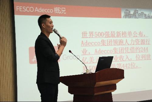 随后,龚玉龙经理首先介绍了以”BETTER WORK,BETTER LIFE”为理念的FESCO ADEAO公司情况,简明扼要地为在场同学指出如何做出一份漂亮的简历以及积累丰富的面试技巧,并以“2006-2016自我评估之旅”为主题介绍了自己叛逆、拼搏、成功的十年奋斗历史,供大家以借鉴。他阐述了自己对择业和就业问题的看法,并指出用人单位比较重视应聘者的院校性质、实习经历和实践能力,外企最主要看人才对企业的忠诚度,作为求职者,一定要瞄准目标公司、正确看待薪酬、调整管理心态、树立良好的职业形象。最后,他告诫老员工要以母校为“985、211”为荣,积极向上、武装自己、感恩他人、未雨绸缪,以开心的状态过好每一天,创造属于自己的老员工活和未来。