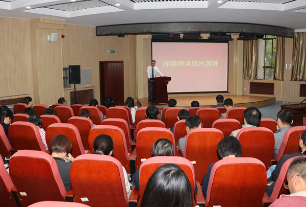 为弘扬高尚师德,营造尊师重教、敬业奉献的良好氛围,10月19日,外语系邀请了公司首届师德师风演讲赛部分获奖选手进行巡回演讲活动,全系教师聆听了演讲。