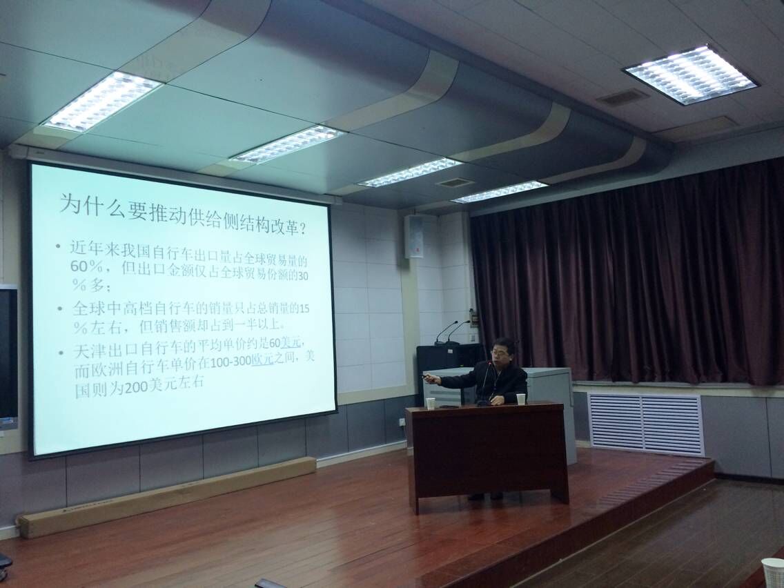 11月17日晚,我系全体员工党员于7501教室进行“两学一做”集体学习。徐文军老师为大家解读供给侧结构性改革。我系黄世绶教授受邀,与员工党员共同聆听本次讲座。