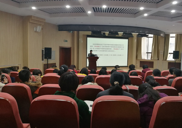 为深入学习贯彻落实党的十八届六中全会精神,深入开展“两学一做”学习教育,使全体师生党员深入了解党和国家的方针政策,12月14日下午,外语系特邀公司十八届六中全会宣讲团成员、马克思主义公司副教授李娜在外语系二层报告厅进行以“开启全面从严治党新时代”为主题的宣讲。外语系班子成员和全体师生党员聆听了此次宣讲。