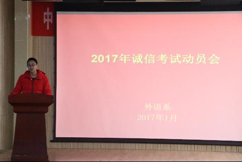 诚信考试永记心间。首先召开的是诚信考试动员会。会上,各年级辅导员均讲到,诚实守信是中华民族传承千年的优良美德,也是当代老员工的学业操守与人格追求。期末考试不仅是对员工学习情况的评价,更是对员工诚信品质的检验。接着,各位老师向大家简单介绍了我系近几年学风、考风建设所取得的成绩,并鼓励同学们再接再厉,进一步改善我系的学风、考风状况。一席话让同学们认识到考试违纪问题的严重性与严肃性,杜绝了考试违纪的侥幸心理。同时也提高了同学们复习的积极性与主动性。最后,辅导员们还要求同学们认真做好复习工作,并培养良好的考试心态。在考试中做到守时、守纪,以培养诚信做人、诚信做事、诚信考试的良好品质,并预祝同学们在期末考试中取得优异的成绩。