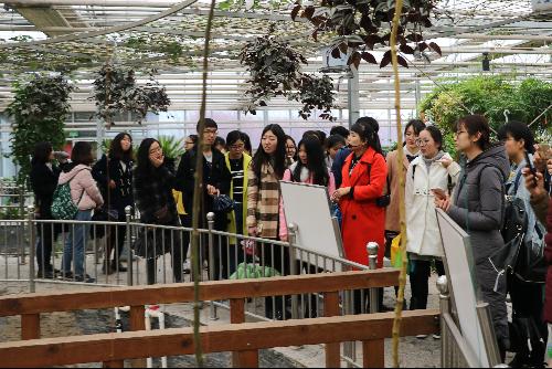 在现代农业创意馆,同学们了解到了农业与现代科技结合所产生的新方法、新创意;在西部特色馆,同学们知晓了诸如仙人掌、芦荟、仙人球等植物的生长环境及习性;在超级菜园,同学们惊叹到了红薯可以“头上结果”、茄子也可以长在“树上”等新景祥;在南方果树馆,同学们则看到了在北方看不到的香蕉树、火龙果树等植物。参观之余,同学们认真听取讲解员的介绍,纷纷拍照、做记录,不断加深印象。此次可谓是另同学们大大的开了眼界,增长了见识。