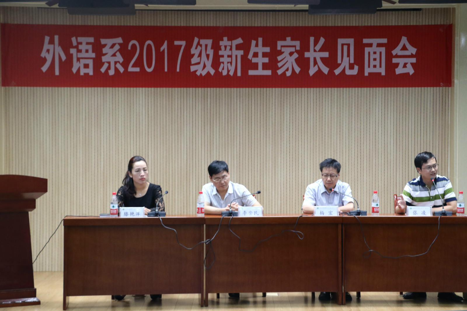 座谈会上,外语系主任杨宏就保研、考研、就业、出国、交换生、小班特色、学科特色等方面做了详细讲解。并谈到今年的新生有91人,代课教师30余人,其中还有四位教授,一定是精细化管理。其次也直面现象告诉家长现在的员工依赖性很强,自主学习能力差,容易被外界环境所诱惑,不能做到远离手机。最后也阐述了我系培养的是孩子的综合学习能力,而大学不仅仅是专业学习,更是要求全面发展。