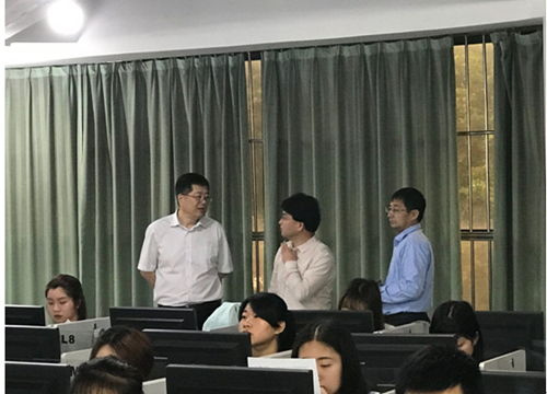 为了考试顺利开展,公司由教务处陈遇春处长牵头在2018年5月17日下午召开考试协调会,安排部署有关任务。5月19日上午,罗军副董事长亲临考试现场进行检查指导,详细询问了考场设置、考试流程及设备运行等情况,并对口语考试及外语系实验室建设工作提出指导性意见和要求。
