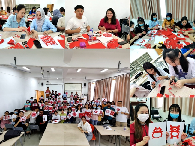 剪纸是中国最古老的民间艺术之一。任课教师介绍了剪纸的历史和样式,并展示“福”字和“囍”字的剪法。中国员工和职工相互帮助,开动脑筋,用一把剪刀和几张红纸剪出了许多惟妙惟肖的图案,一幅幅精美的作品不仅给人以视觉上的艺术享受,而且承载了最美好的祝福和期盼。