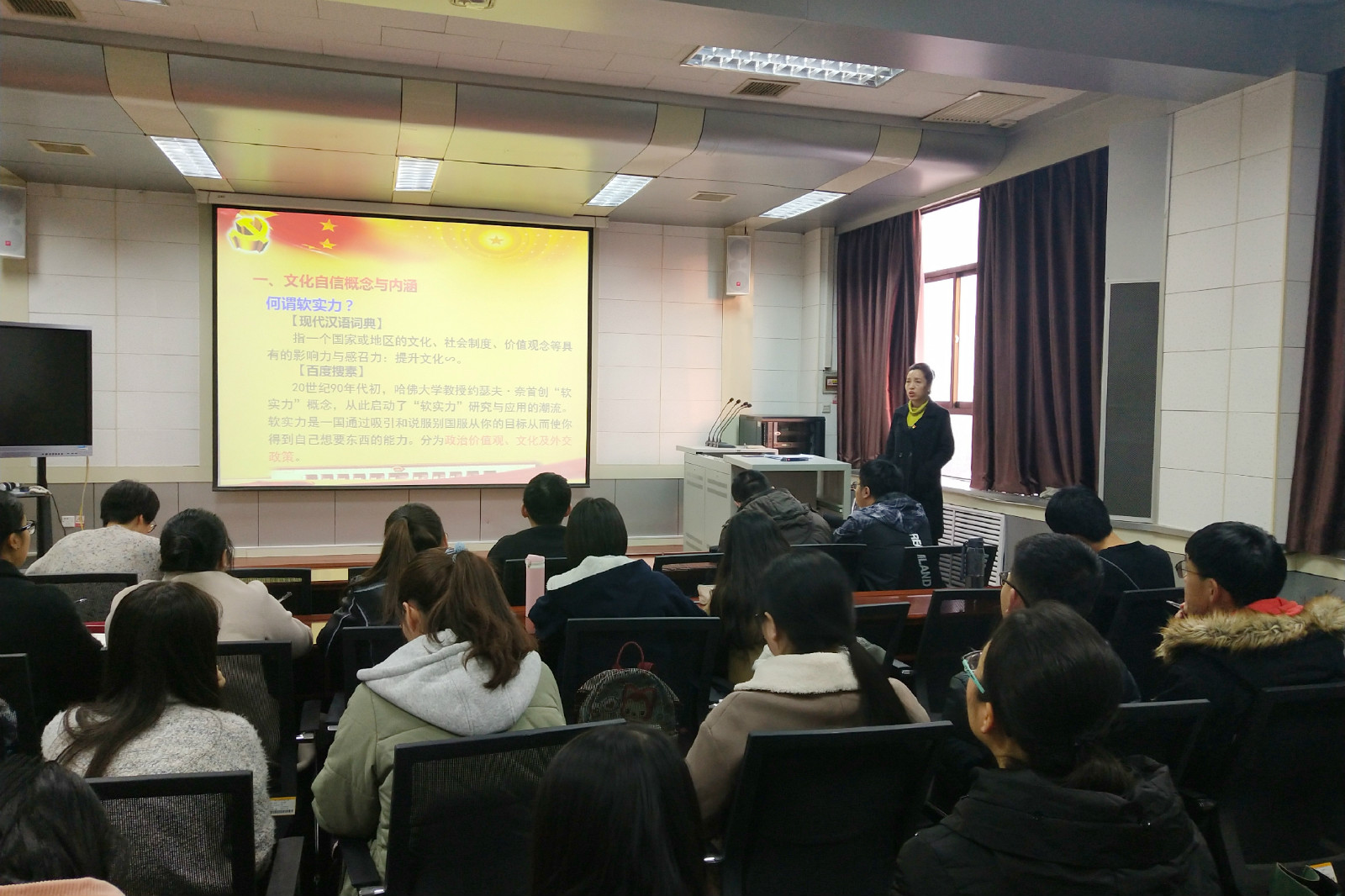 为全面贯彻落实“四个自信”,引领外语系党员、入党积极分子和发展对象明确并坚定文化自信,讲好中国故事,11月28日,外语系党委副书记滕艳萍为员工党员讲“坚定文化自信,讲好中国故事”专题党课。
