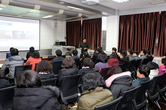 1月7日,外语系部门工会在7501多媒体实验室召开第四届教职工代表大会第三次会议,系全体领导班子成员、教职工代表大会代表近40人参会。会议听取和审议了外语系2018年度工作报告、外语系2018年经费使用情况报告,系党委副书记、工会主席滕艳萍主持会议。