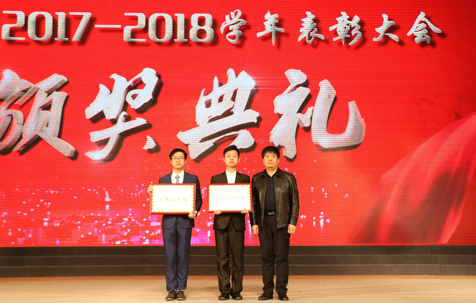 就业指导中心主任罗建峰为“优良学风示范班”、“先进班集体”颁奖