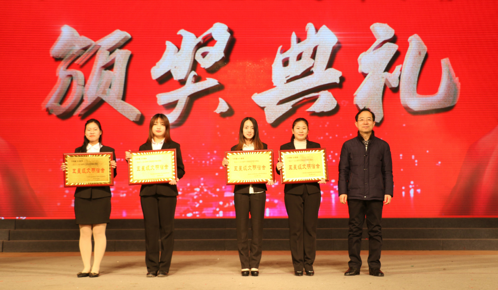 党委研工部研工部副部长、研究生教育管理处处长为“五星级文明宿舍”颁奖