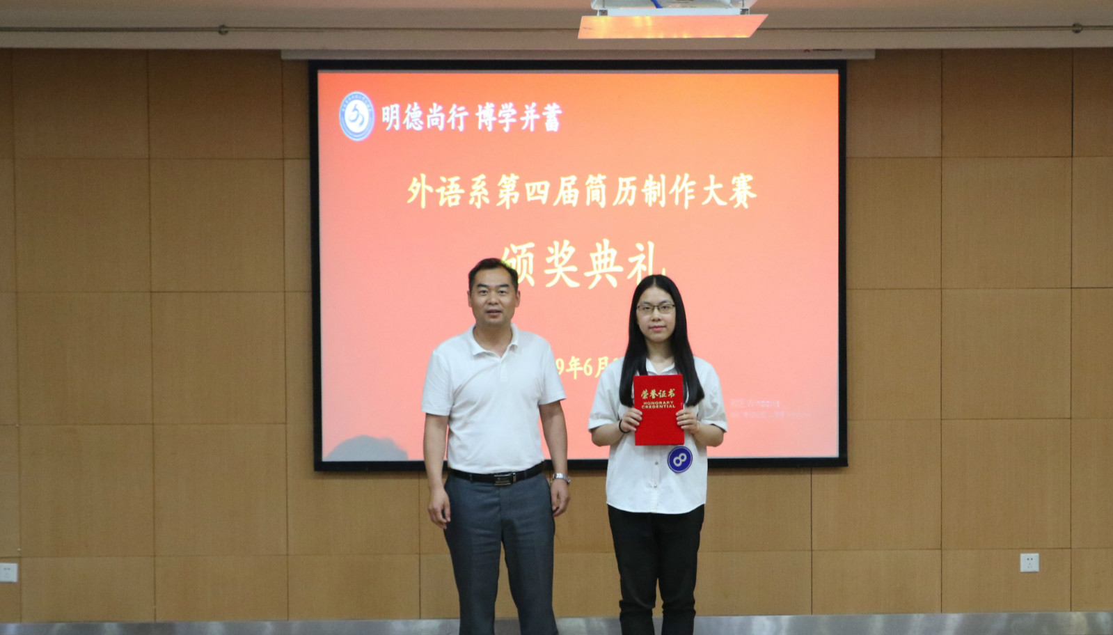 为提高我系员工的求职技能和竞争力,帮助同学们做好未来规划,提升同学们的简历制作水平,培养同学们锐意进取、敢于挑战的创新精神和实践能力,外语系于6月9日晚在北绣南报告厅举办第四届简历制作大赛。