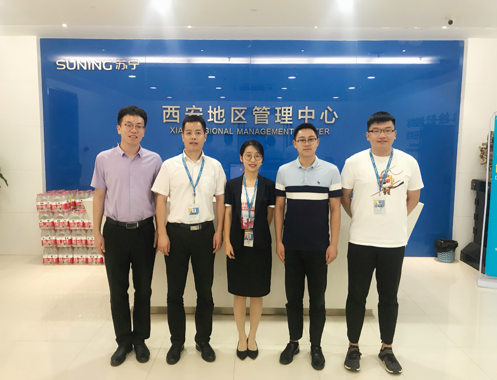 走访心田花开科技有限公司时,在董事长马力的带领下深入各个办公区域进行实地参观,了解了教育机构的运营模式。在交流中,董事长马力系统的介绍了心田花开教育机构的发展历史、规模、发展计划及工作的薪酬福利等方面的内容。针对2020届毕业生的就业情况,公司可提供就业实习、简历指导、面试技巧的培训,同时校企双方在新学期开展校园招聘达成共识、就深入推进就业实习基地建设等方面进行了协商,加大双方合作。随后,外语系学工队伍走访陕西苏宁云商销售有限公司,就公司的营销模式、“1200工程”、“储备经理”等相关情况以及企业用人招聘要求和就业实习进行了详细了解。