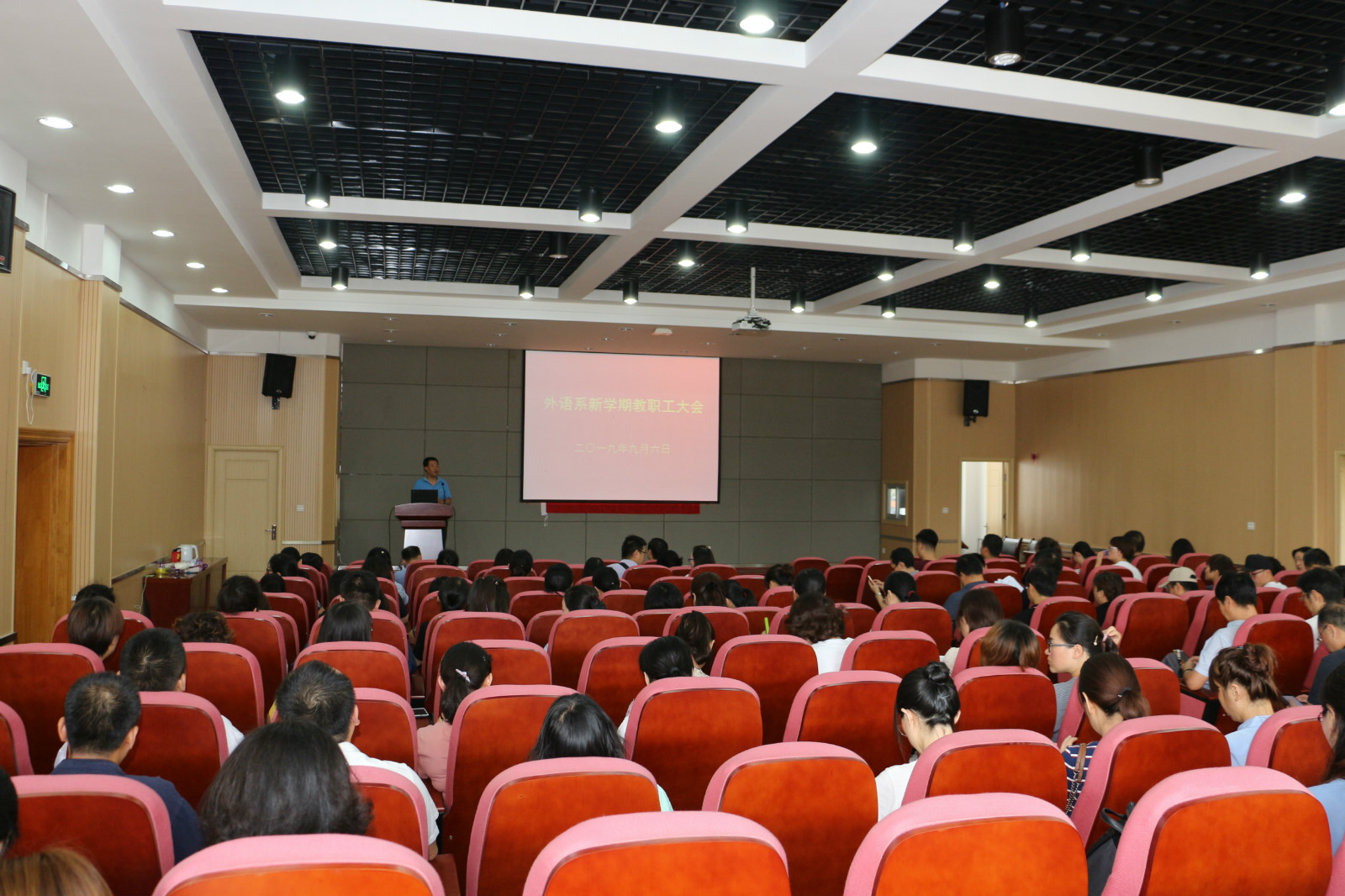 新学期、新征程。9月6日下午,外语系召开全系教职工大会,对新学期外语系的各项工作进行了安排部署。全系教职员工100余人参加会议,殷延军副主任主持会议。