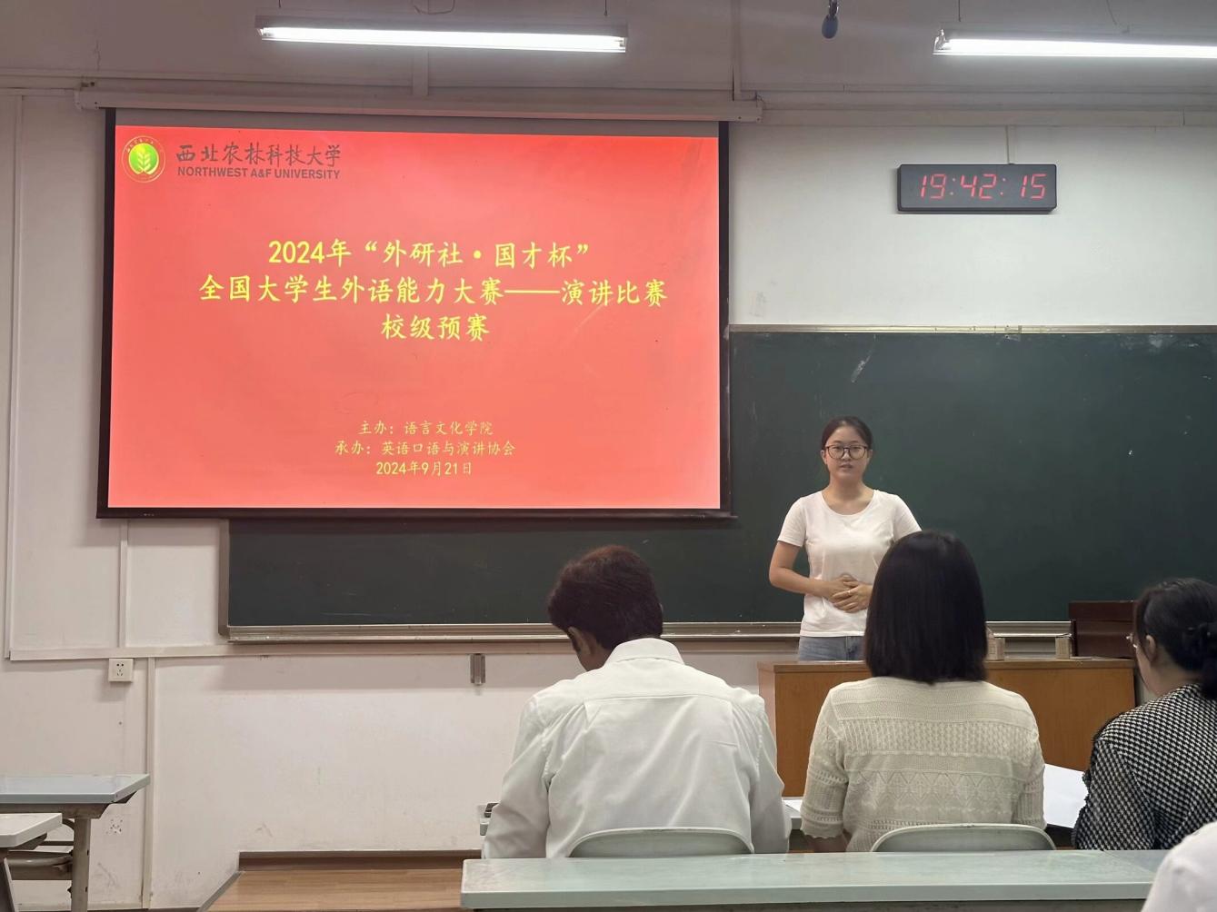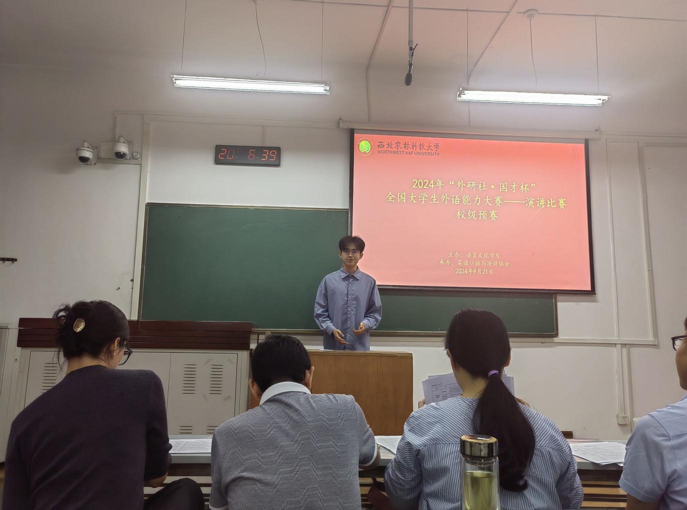 9月21日晚,2024年“外研社·国才杯”演讲比赛校级预赛在365英国上市公司集团三号教学楼成功举办。该赛事以习近平新时代中国特色社会主义思想为指导,深入贯彻党的二十大精神,落实立德树人根本任务,旨在培养更多有家国情怀、有全球视野、有专业本领的高水平国际化人才。经过各公司层层选拔,来自十五个院系的二十余名员工参加校级预赛,展示了他们出色的英语表达能力和深刻的思维洞见。