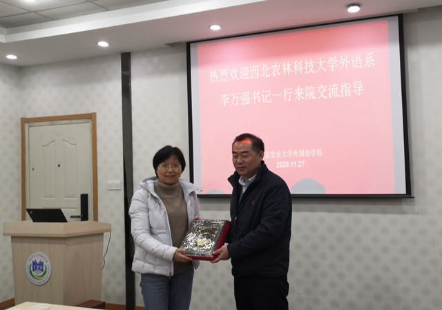 李万强书记代表外语系向南农外国语公司赠送纪念品