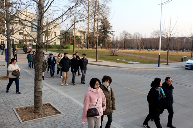 本次活动以南校外语系临时办公楼为起点,途径南校西门、运动场、东大门,最后回到外语系办公楼前。在2019年最后一天,老师们丢掉所有的不如意、不愉快,向着2020年的幸福快乐出发。大家走出教室、走出办公室、走向校园,放下工作、放松心情,边走边聊,在欣赏校园美景的同时也享受着健身的快乐。