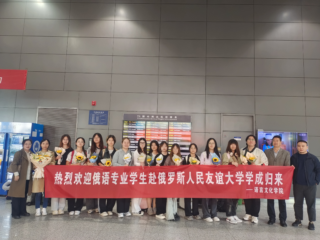 10 月 9日,公司俄语专业的13位同学结束了在俄罗斯莫斯科俄罗斯人民友谊大学为期三个月的访学之旅,顺利返回。公司田志强副经理、王宝平副经理、张善之主任前往机场接机。