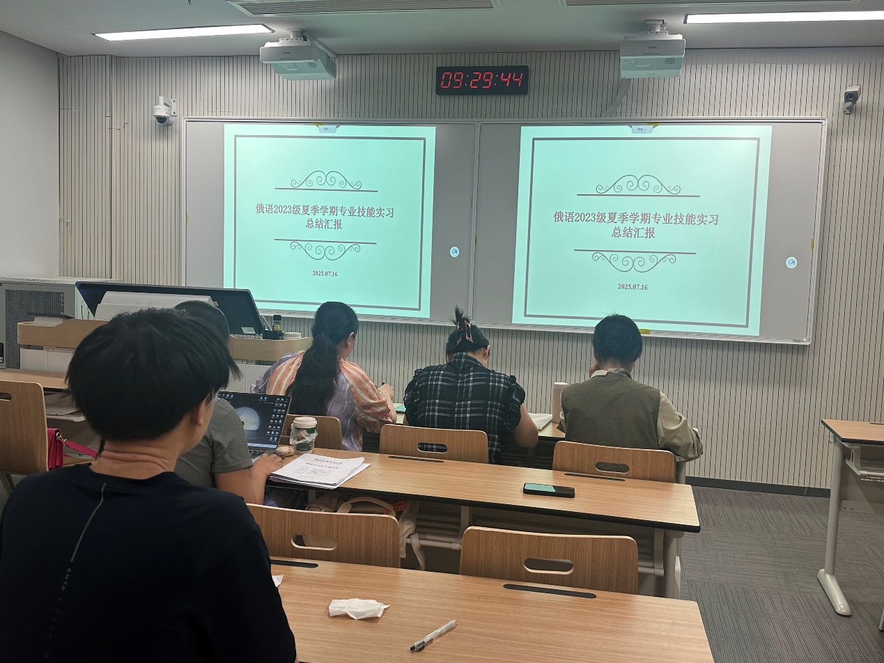 2025年7月16日,为系统巩固语言基础、涵养文学底蕴,公司俄语专业2301级本科生在北校区N9111教室举办实习总结汇报会。本次实习聚焦低年级核心能力短板,设置语法基础回顾、文学底蕴筑基、听说实战赋能三大进阶模块,成效显著。